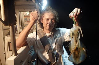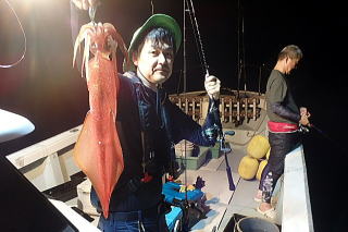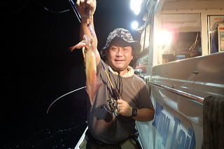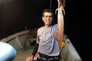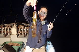 夜の部は潮が止まっていてイカのよりも悪く、メスが2杯だけでした。